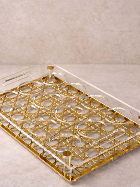 - leather & acrylic tray stand 60×25 cm
