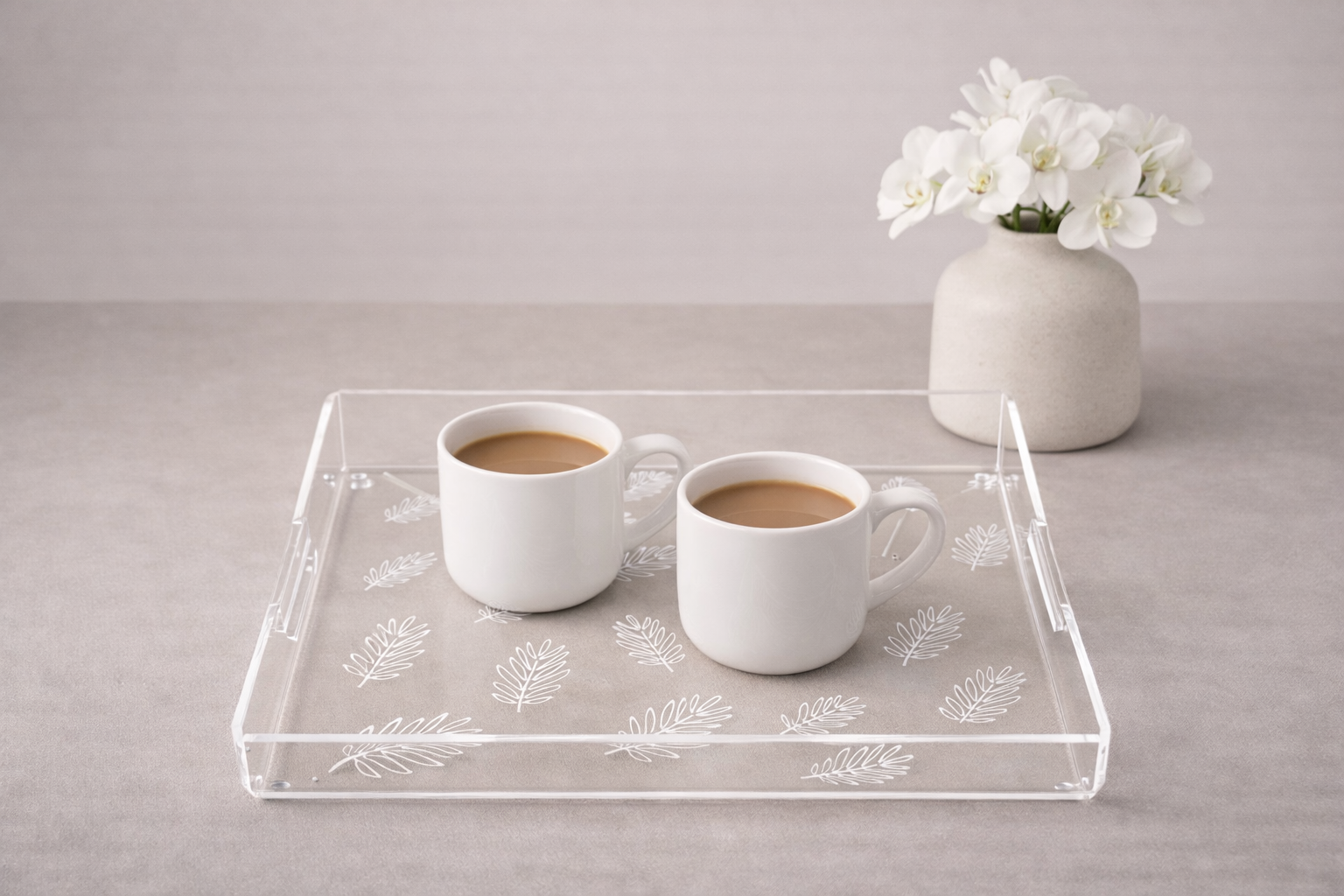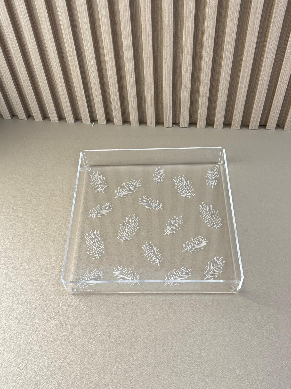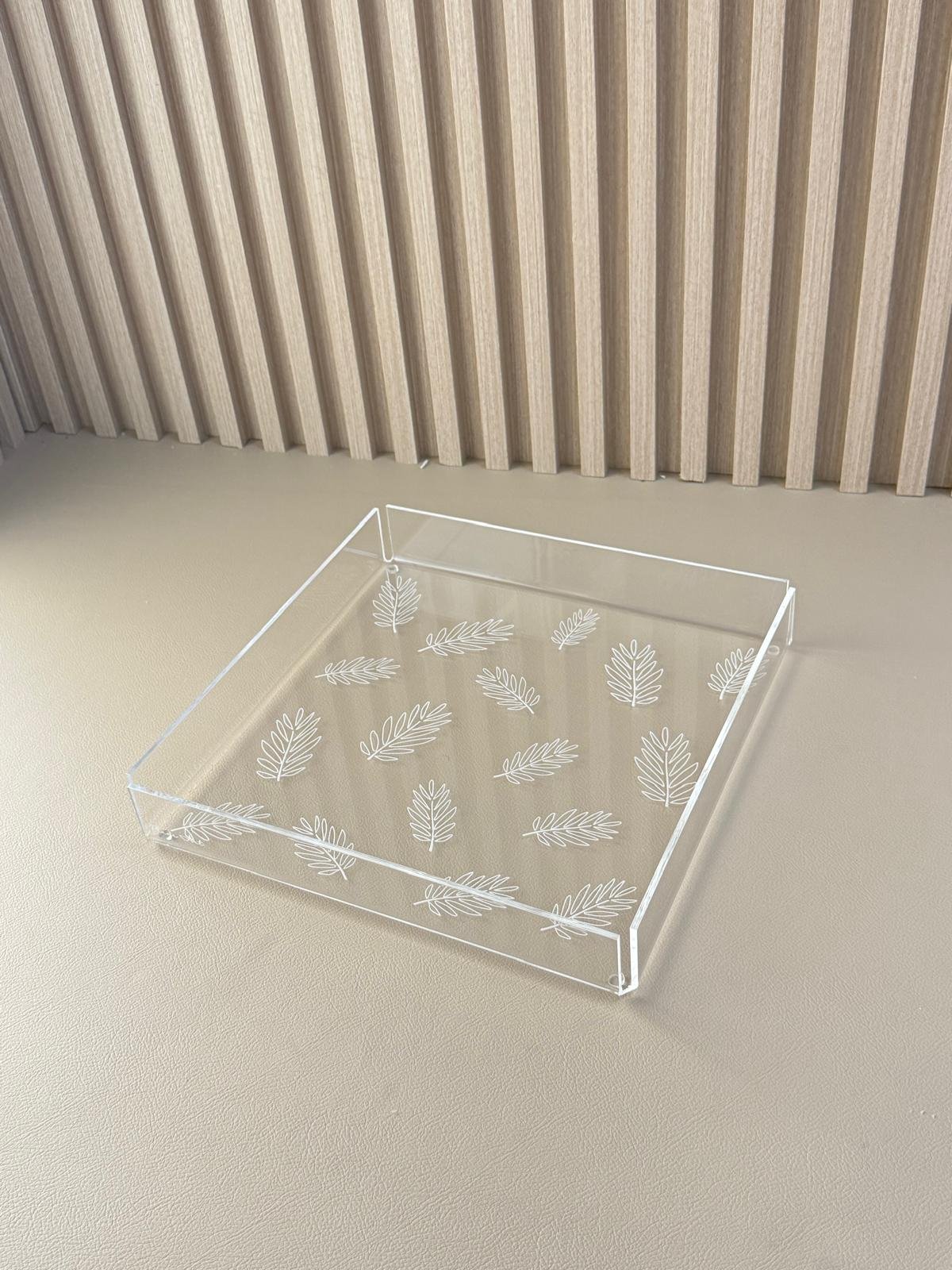 صينيه اكريليك مربعه مع تصميم ورق شجر ناعم 30×30 cm