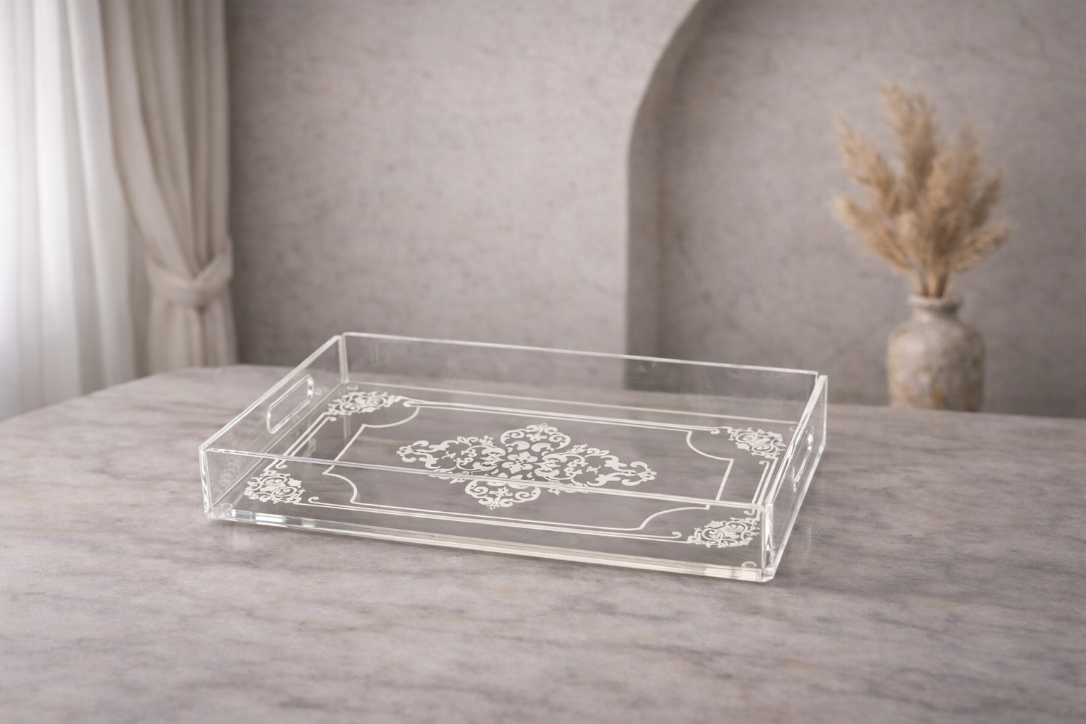 Category: Trays Tag: صينيه اكريليك 40x30 cm مع طبقه ديزاين متحركه