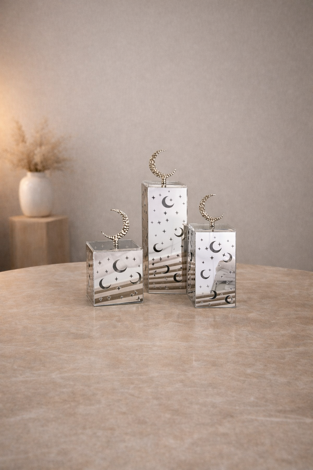 طقم علب رمضان لون فضي ميرور للشمع او الضيافه